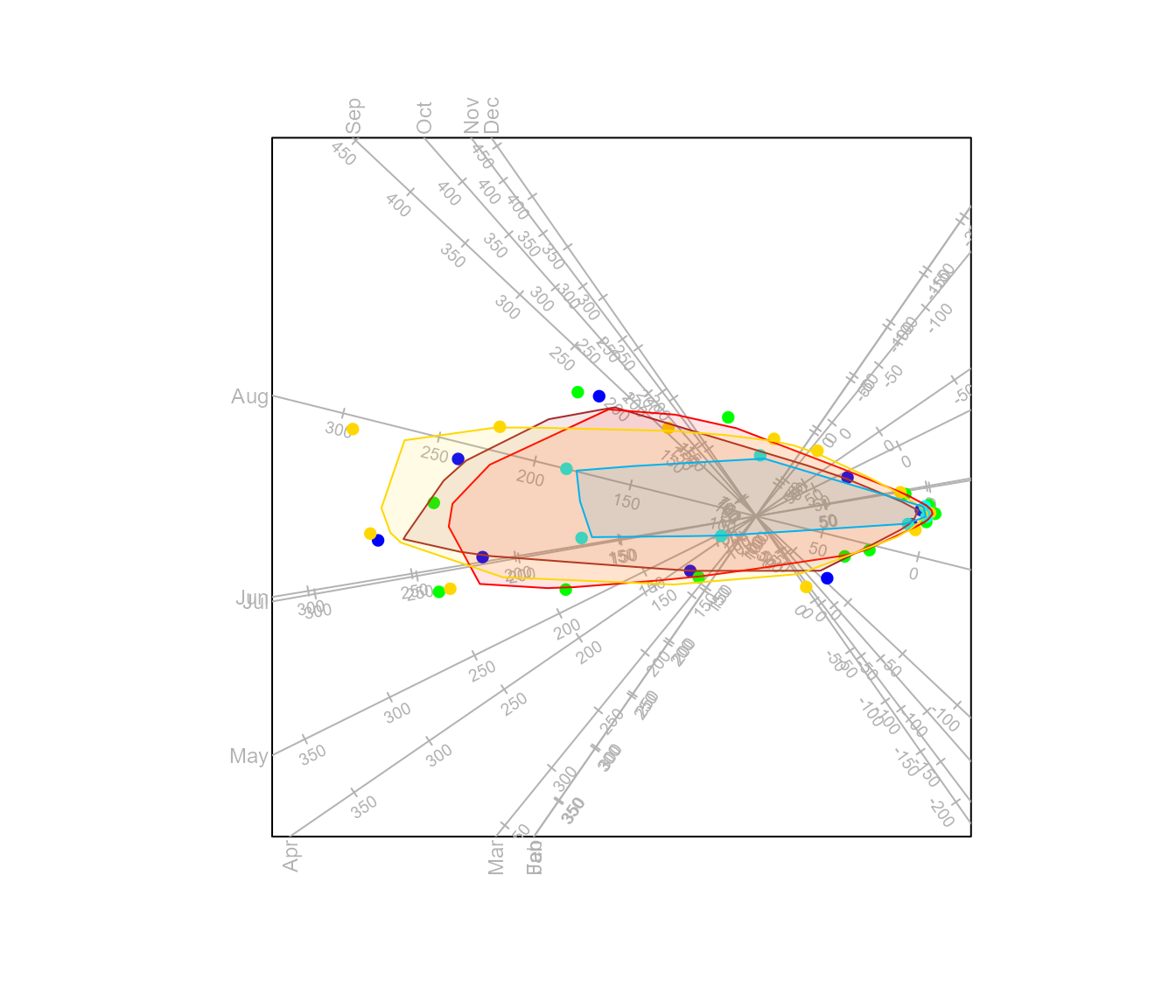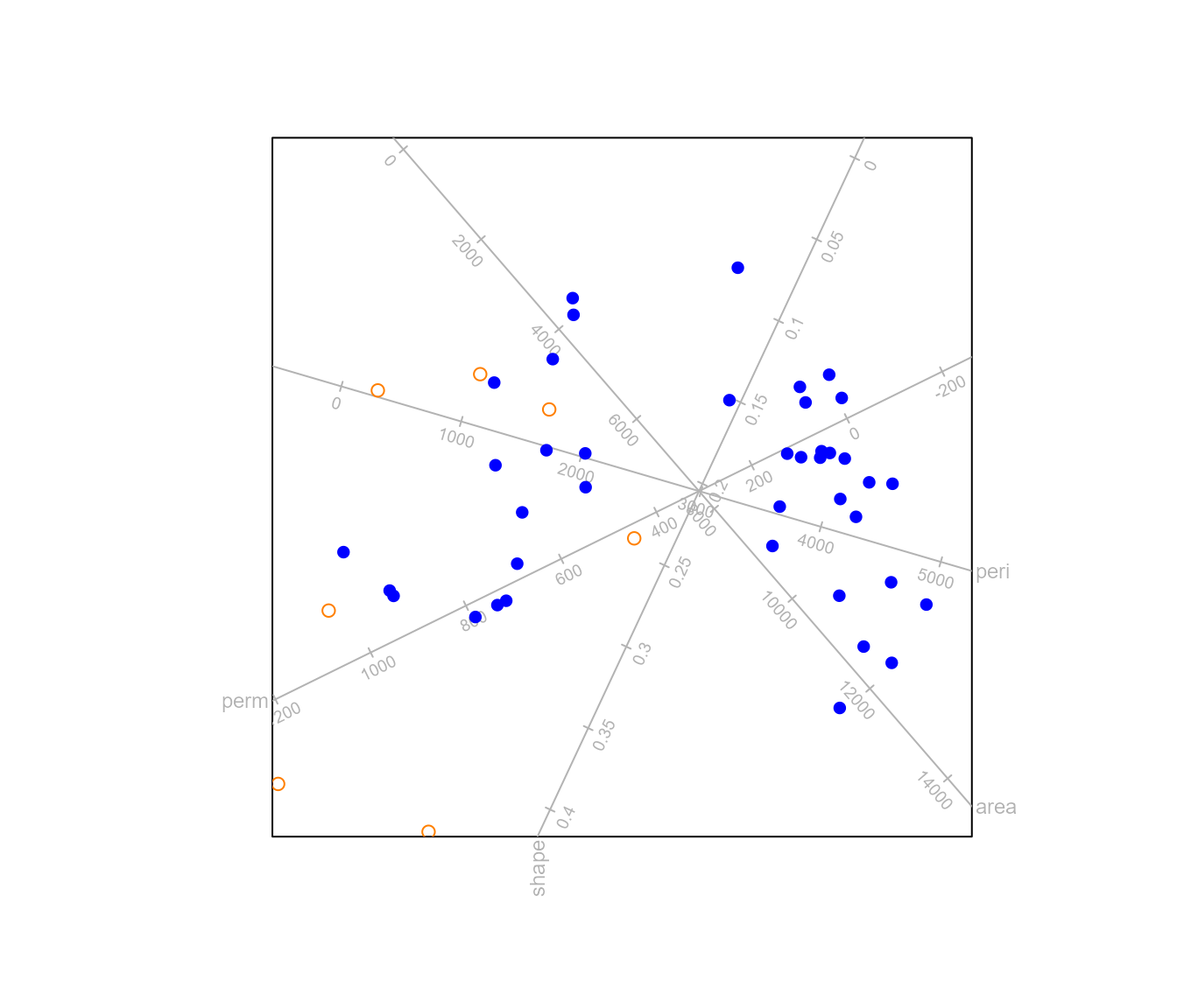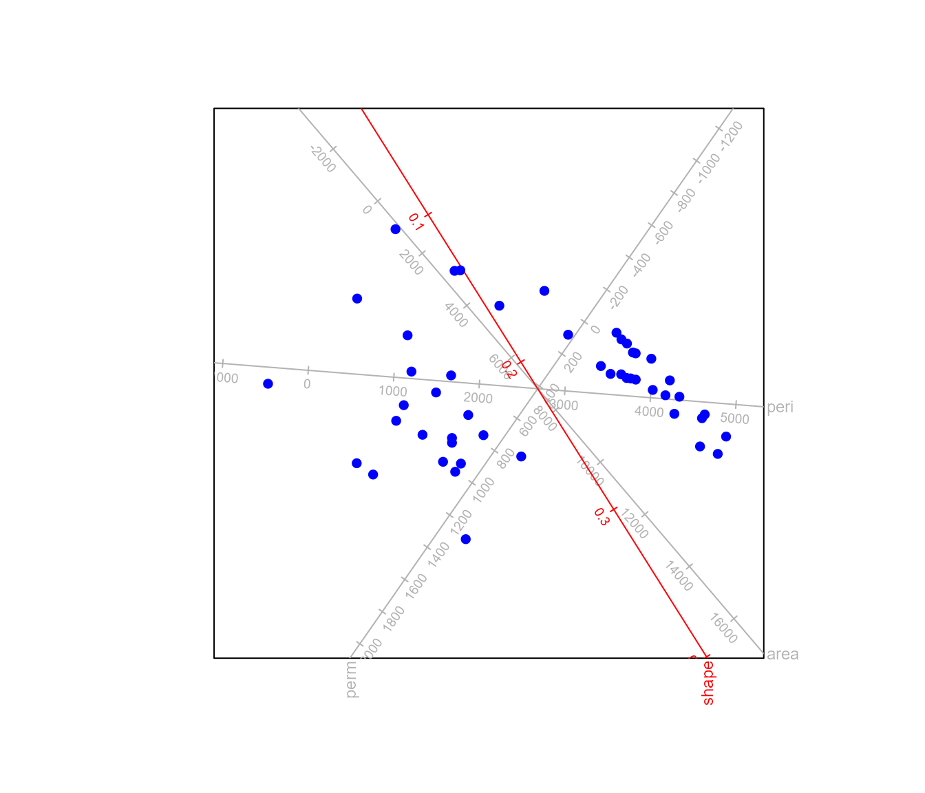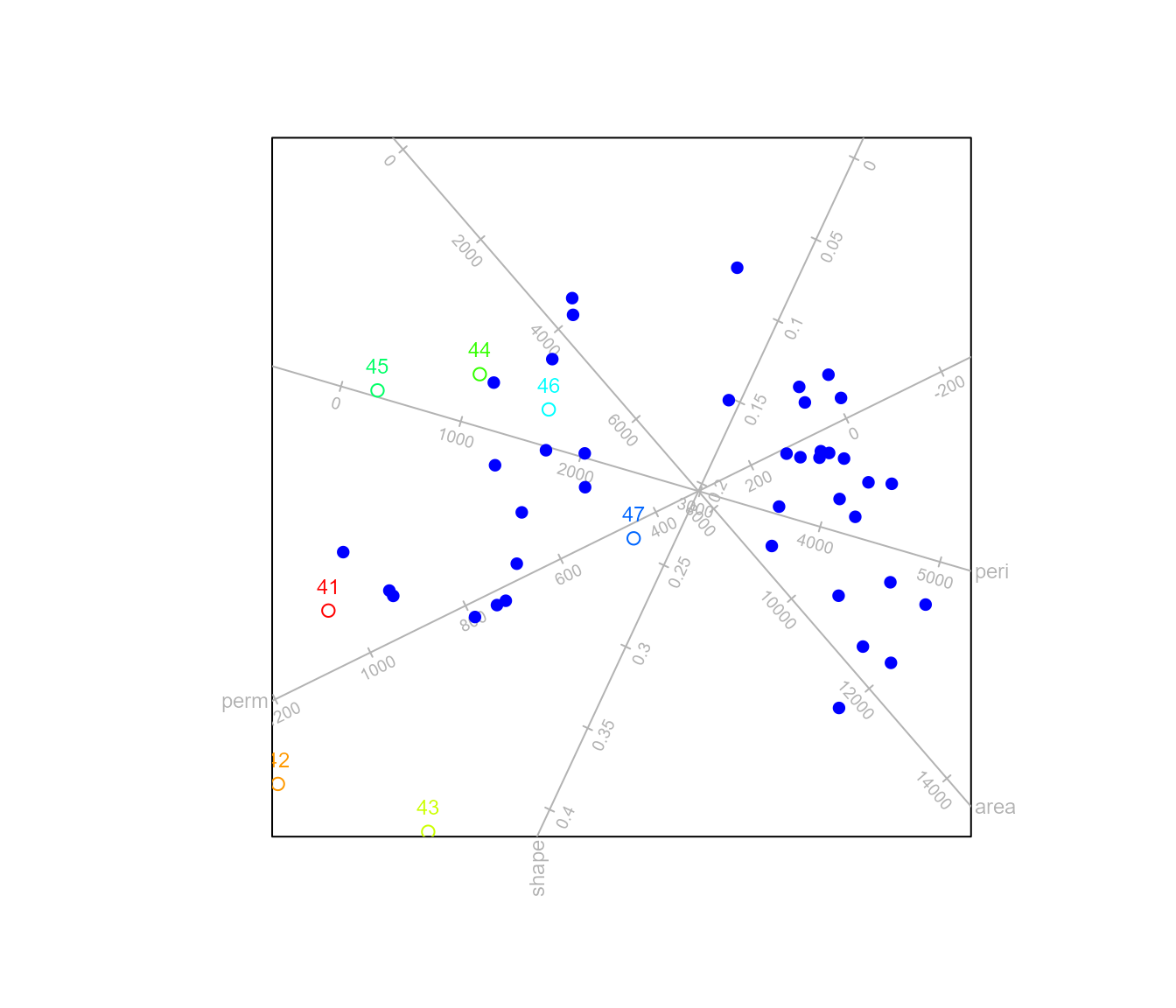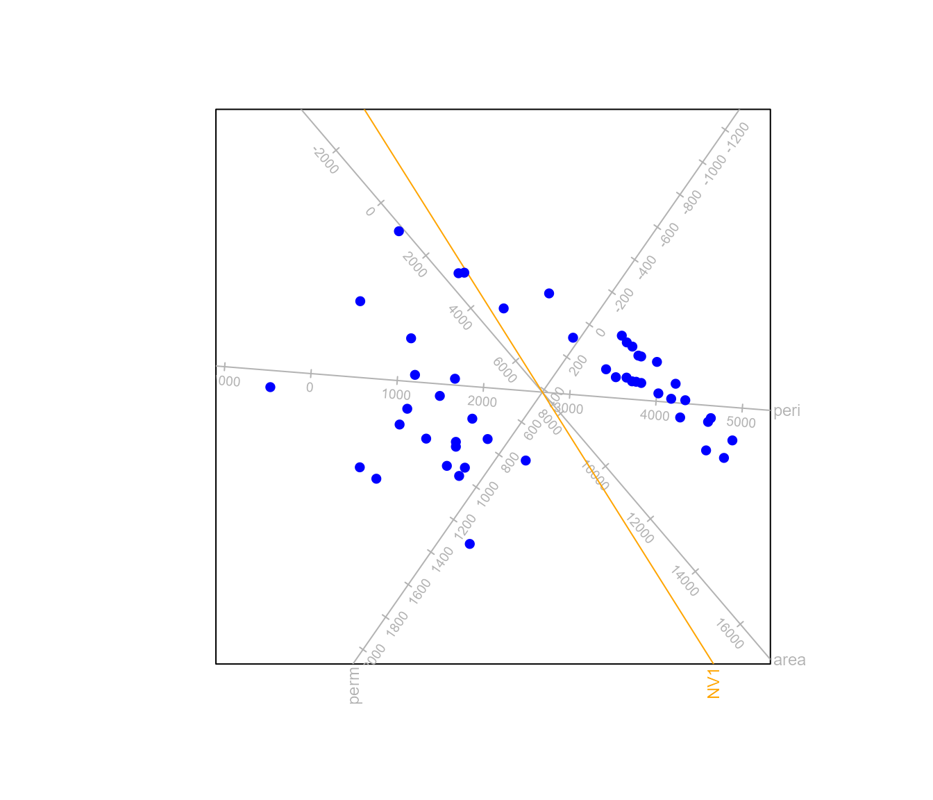 When enhancing a biplot, various additional features can significantly improve its interpretability and utility. Introducing alpha bags helps visualize the central region and variability within a group, providing a robust measure of data concentration. Adding confidence ellipses can illustrate the spread and correlation of data points, making the underlying structure more evident. Including the capability to add new samples and axes facilitates dynamic exploration and comparison of data sets. The option to predict samples and means allows for the projection of data points onto the biplot display, aiding in predictive analysis. Moreover, tools for reflecting or rotating the biplot display can enhance the visual representation by aligning the plot with the user’s analytical needs, offering a clearer perspective on the relationships and dimensions within the data.