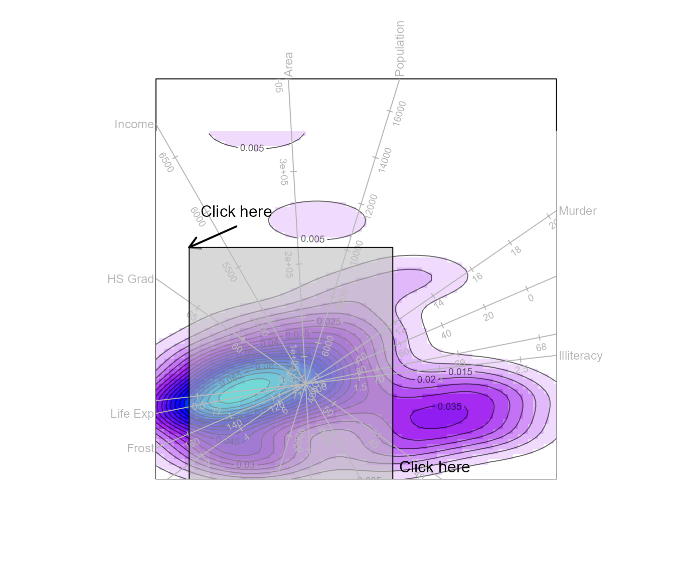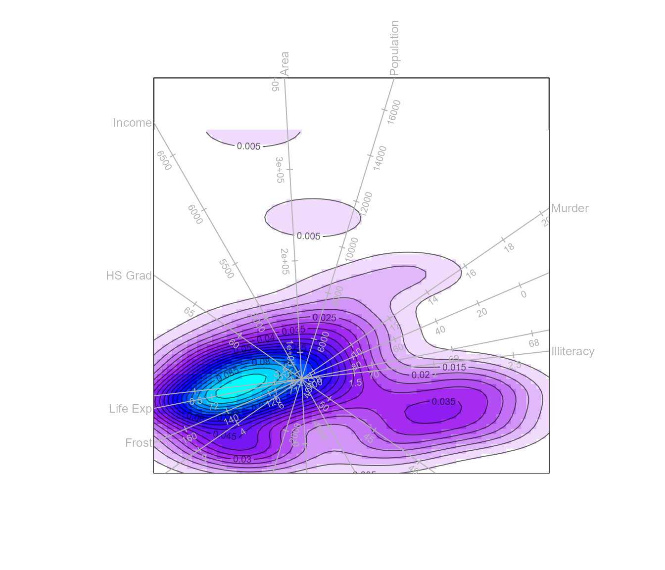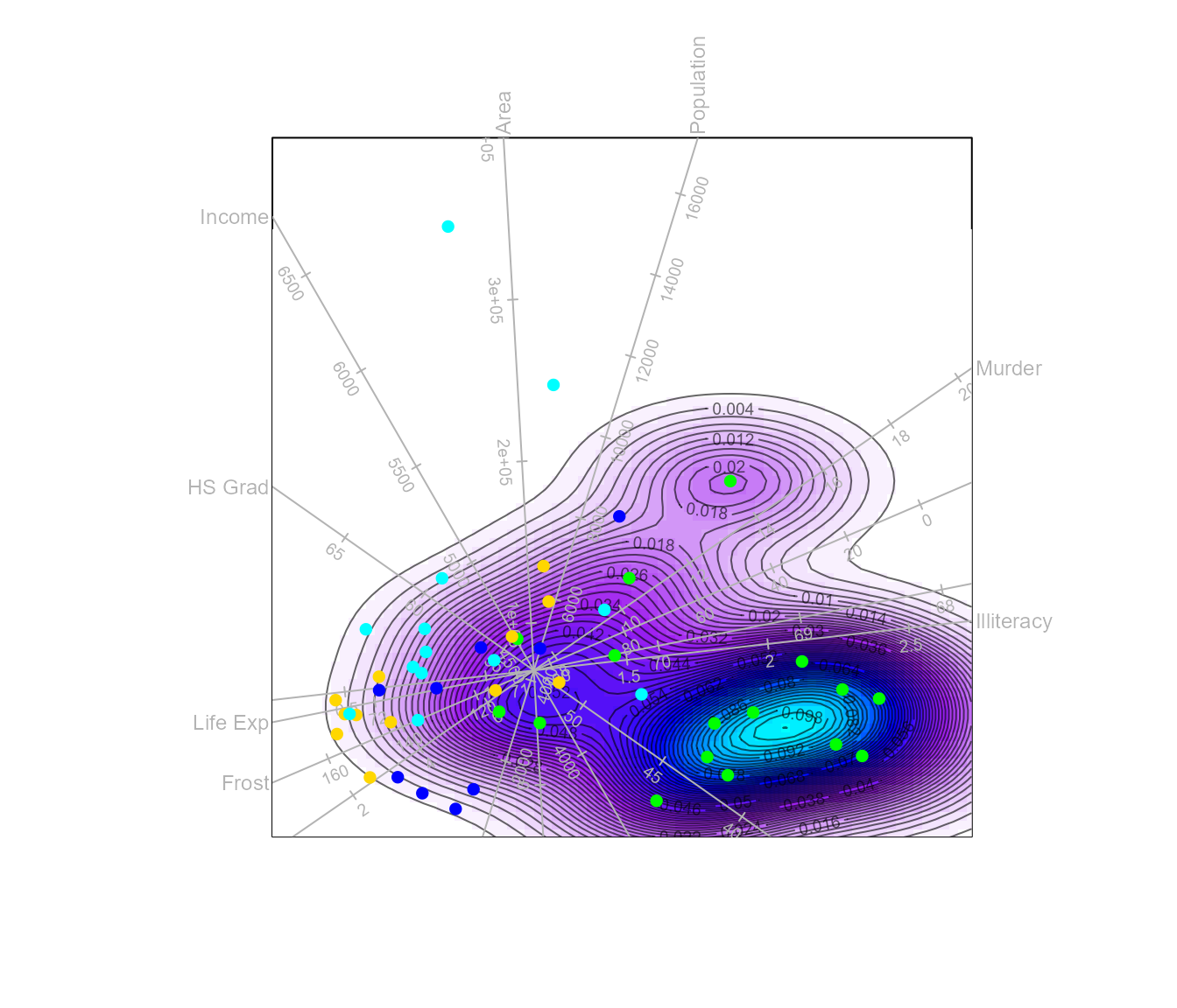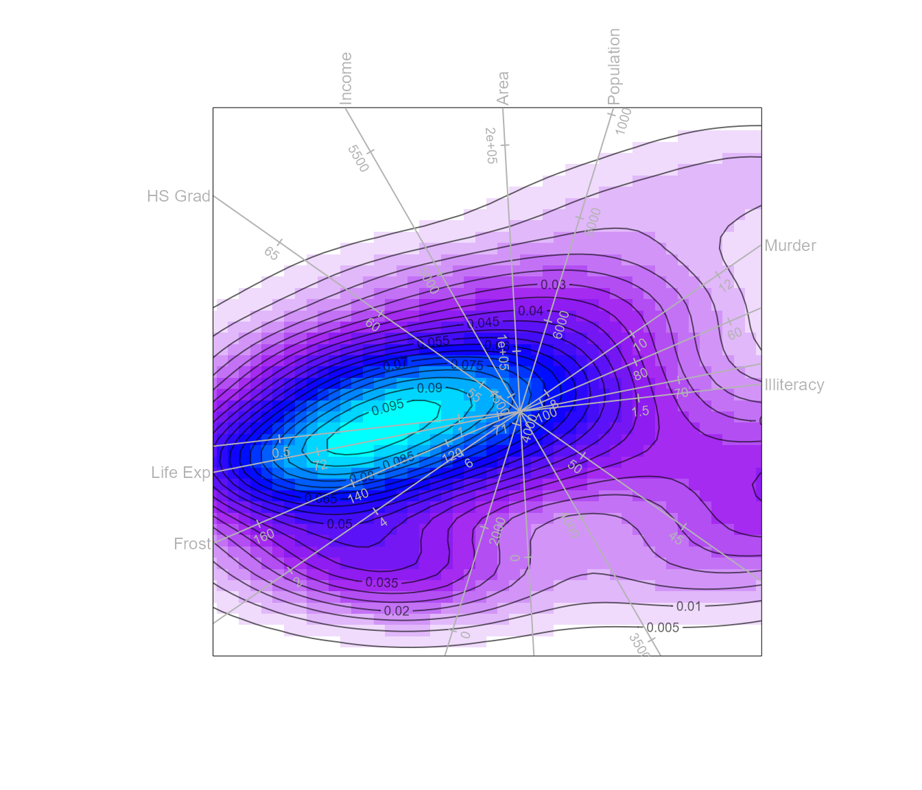 density2D(which=1,col=c("white","purple","blue","cyan"),contours = TRUE,cuts = 20) |>