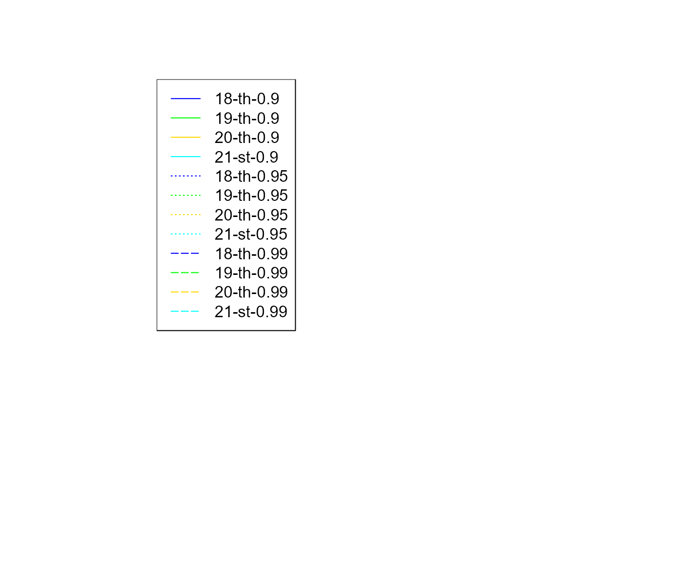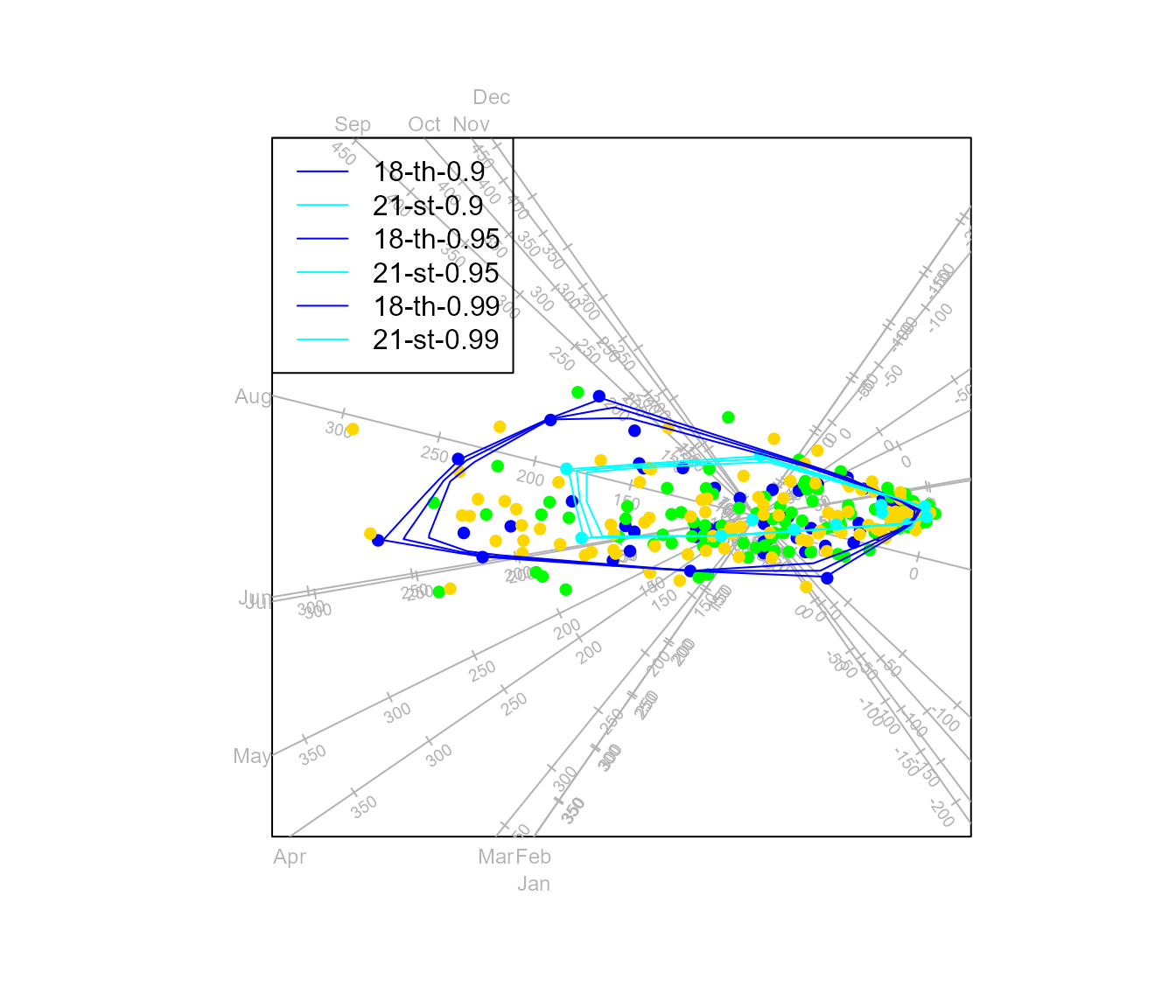 alpha.bags (alpha = c(0.9, 0.95, 0.99), lty = c(1,3,5), opacity=0.05) |>