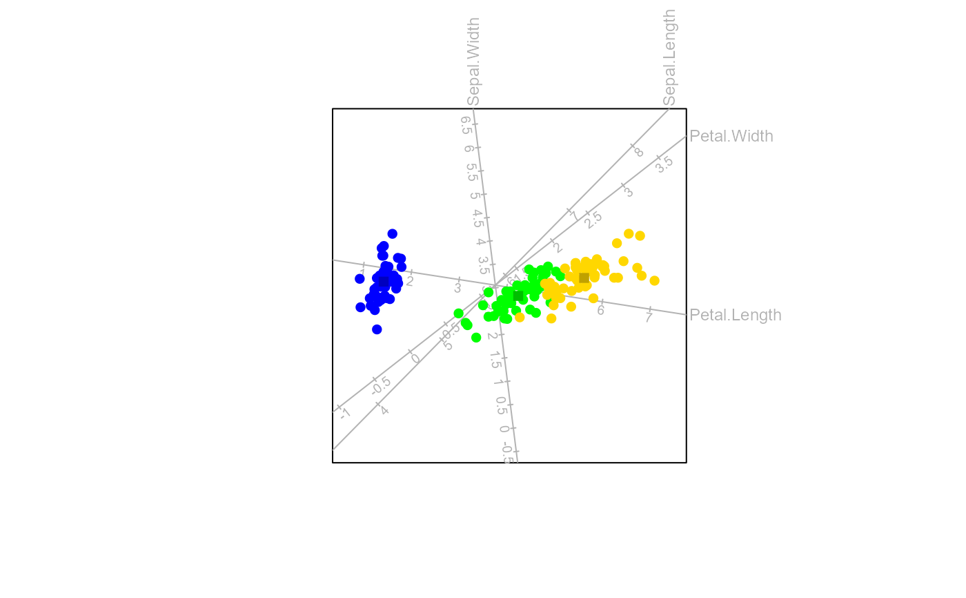 a character string indicating the type of biplot axes to be used in the biplot. One of