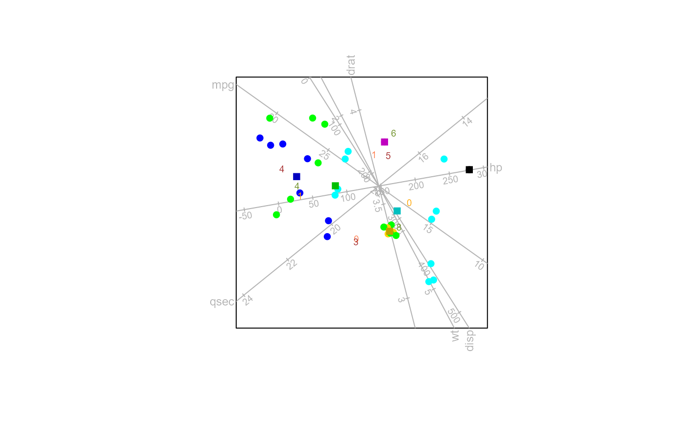 biplot(mtdf[,-11], scaled = TRUE) |> AoD(classes = mtdf[,11]) |>