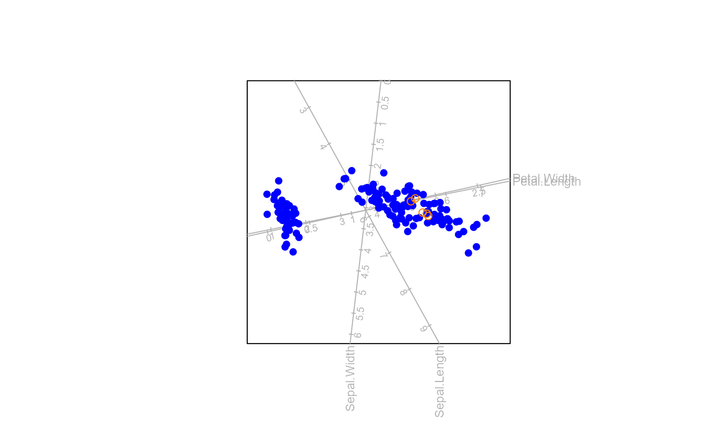 biplotobtained from preceding functionbiplot().- newdata